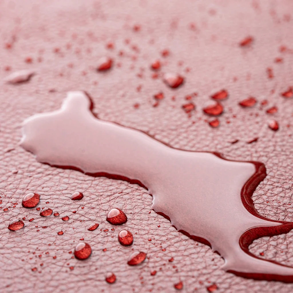 Wir verwenden einzigartiges, unbehandeltes Narbenleder für unsere Produkte, das dank der gewachsten Oberfläche Fette und Öle einfach aufnimmt. Fettflecke verschwinden also mit der Zeit, Verunreinigungen oder Essensreste können mit einem Schwammtuch abgewischt werden.