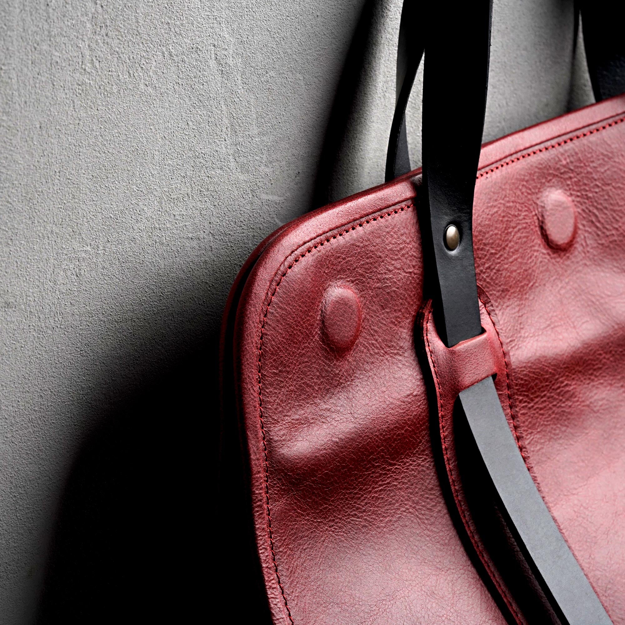 Dank der komfortablen Griffe aus 4 mm dickem, vegetabil gegerbtem Leder liegt die Tasche gut in der Hand und erleichtert den Transport.