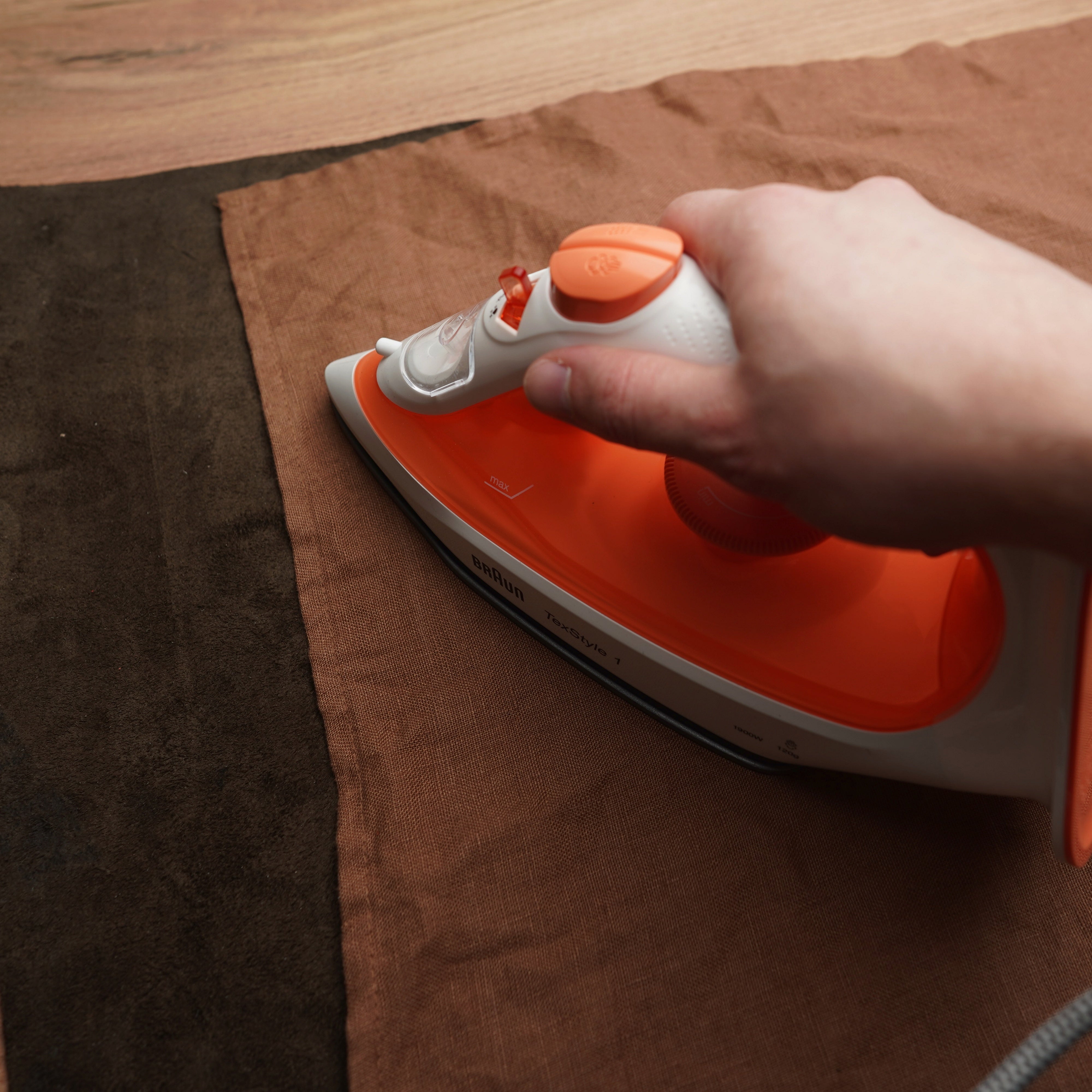 Heizen Sie das Bügeleisen auf mittelhohe Hitze auf.