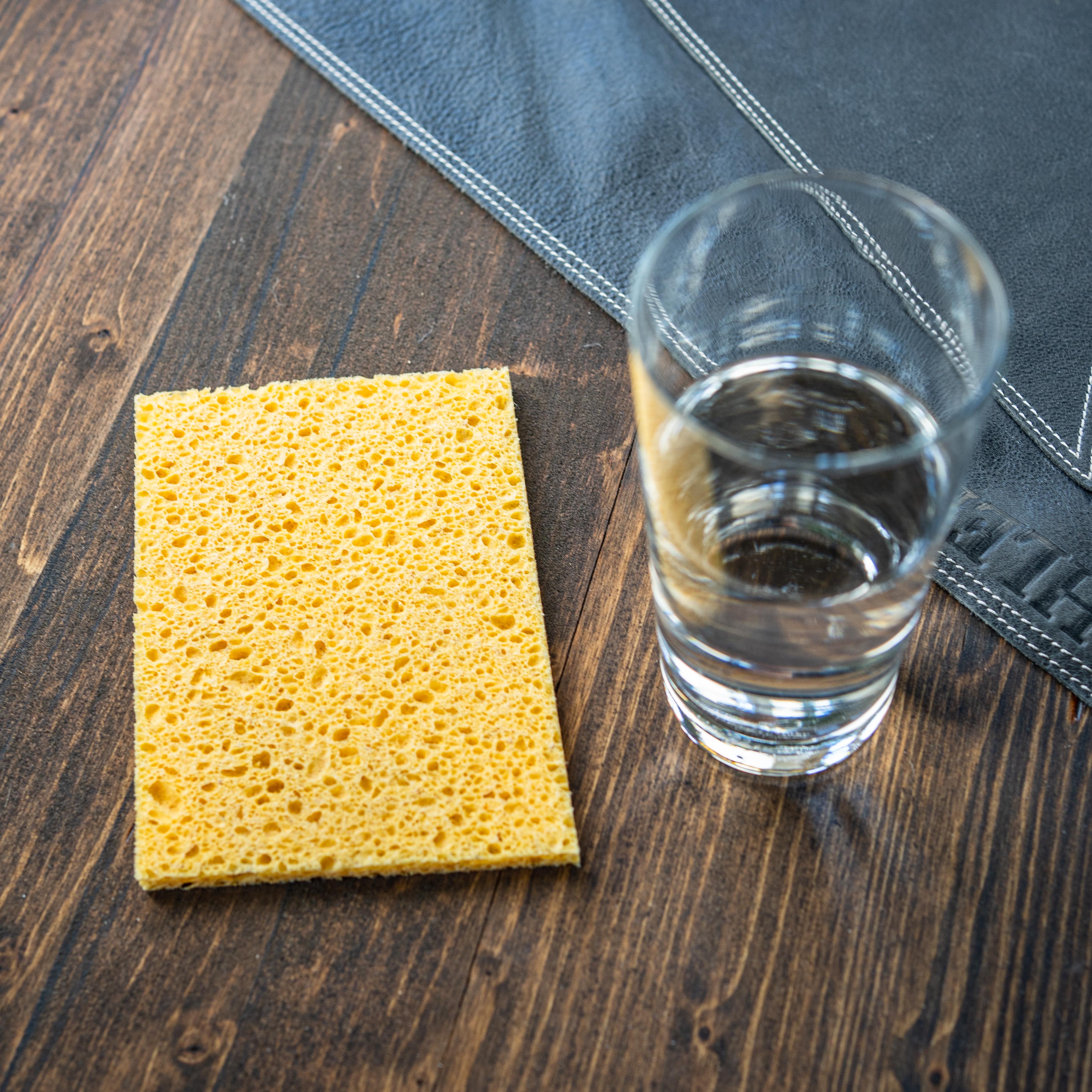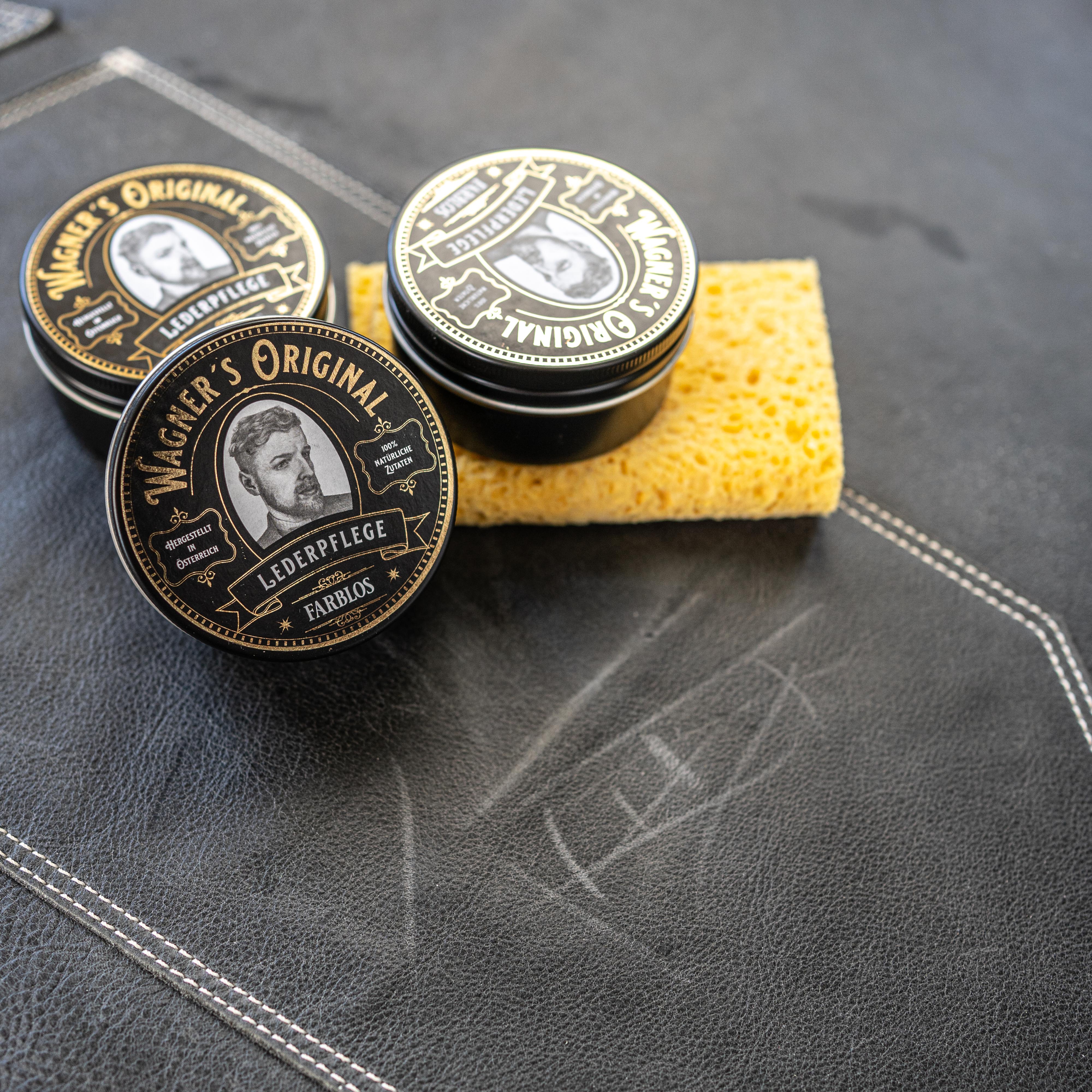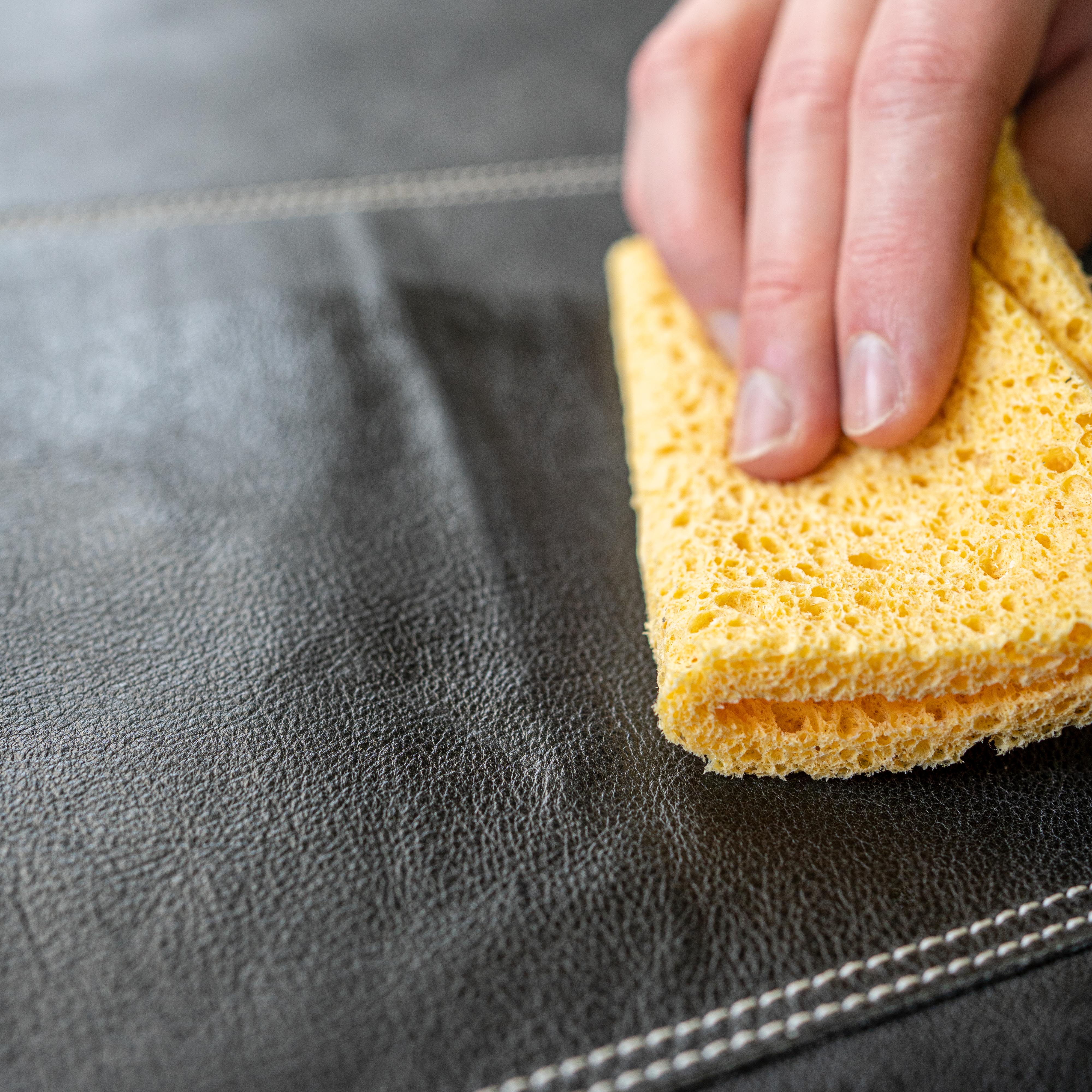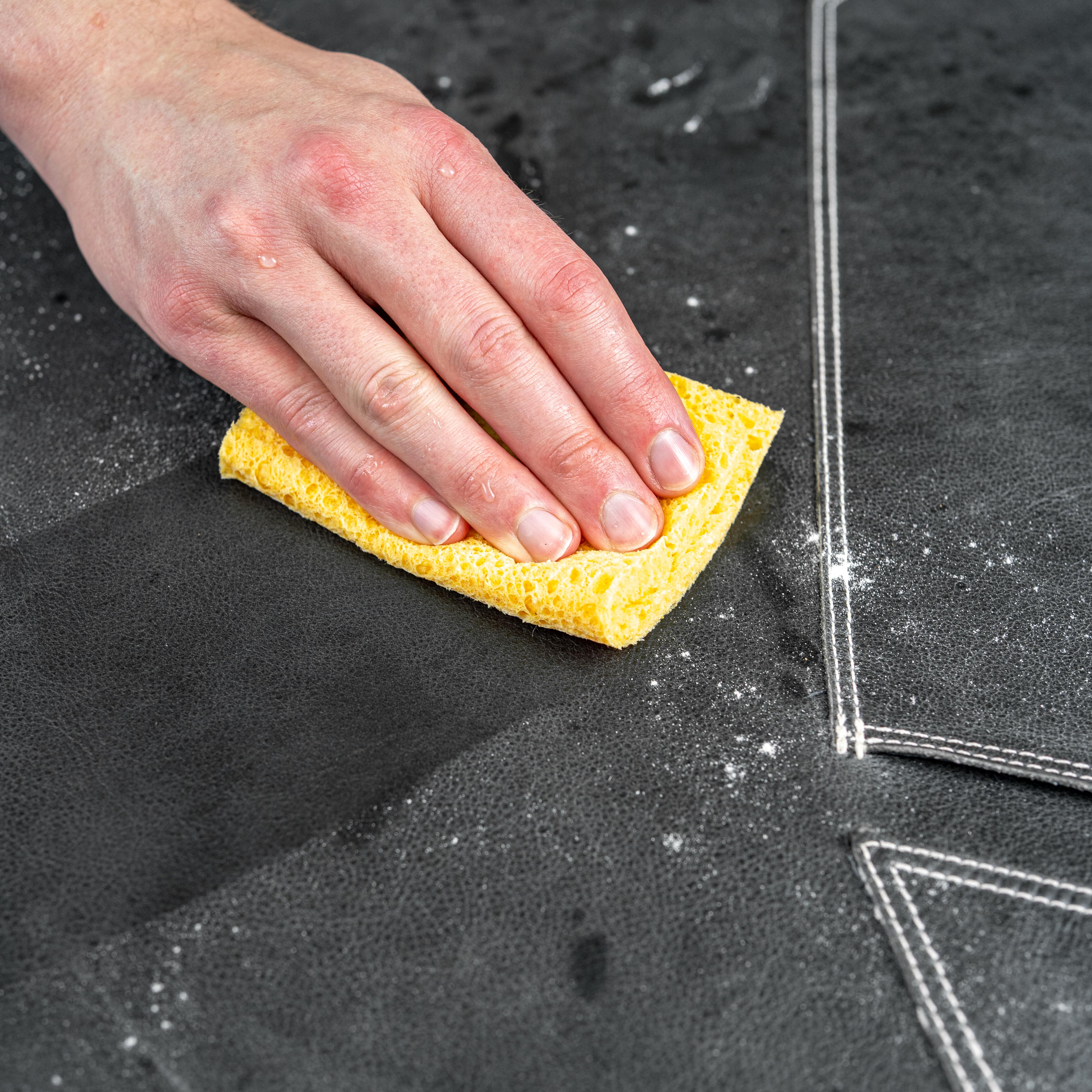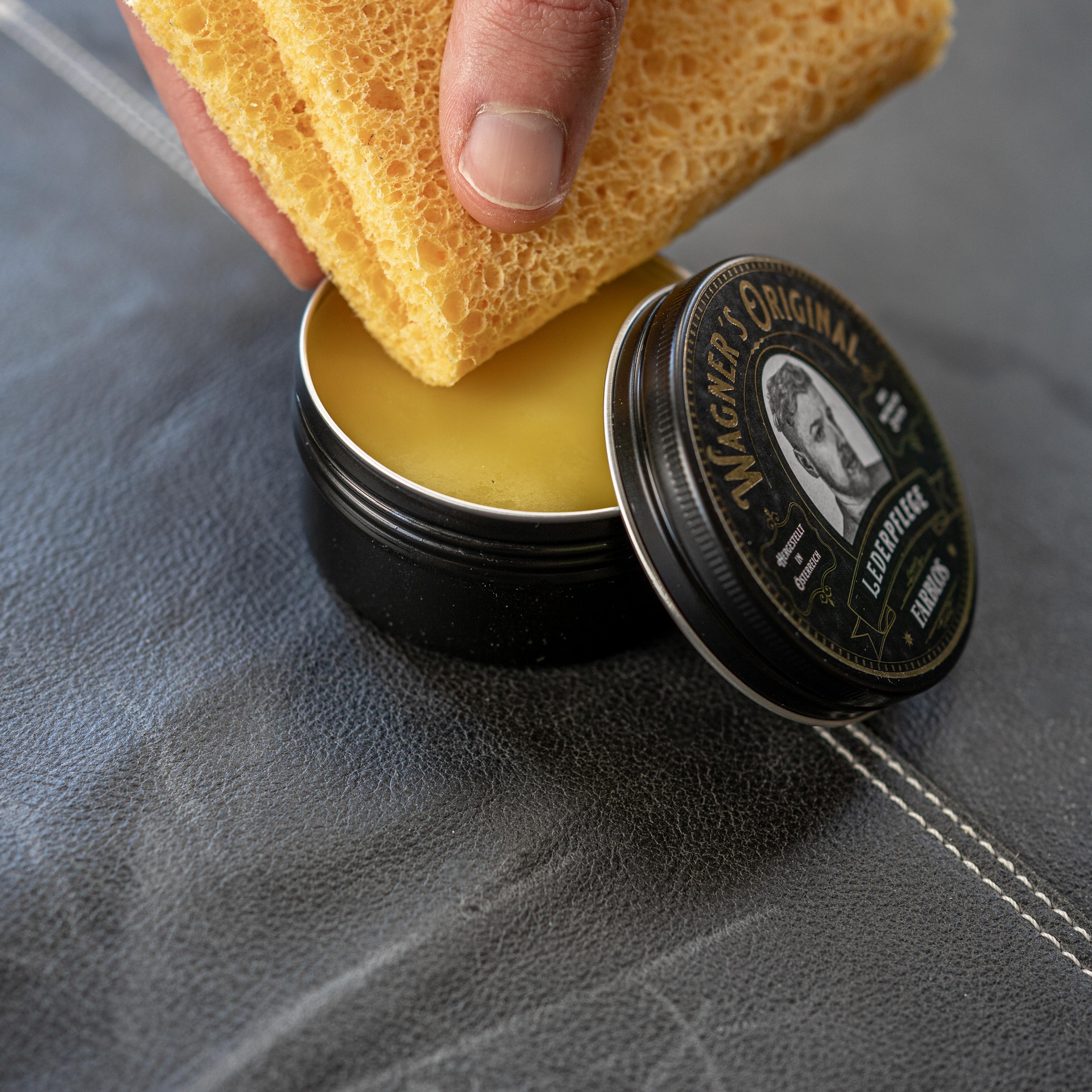 Die Lederpflege wird mit einem weichen Schwamm oder Tuch aufgebracht. Lederpflege ist grundsätzlich sehr ergiebig, wie so oft gilt aber: Viel hilft viel.