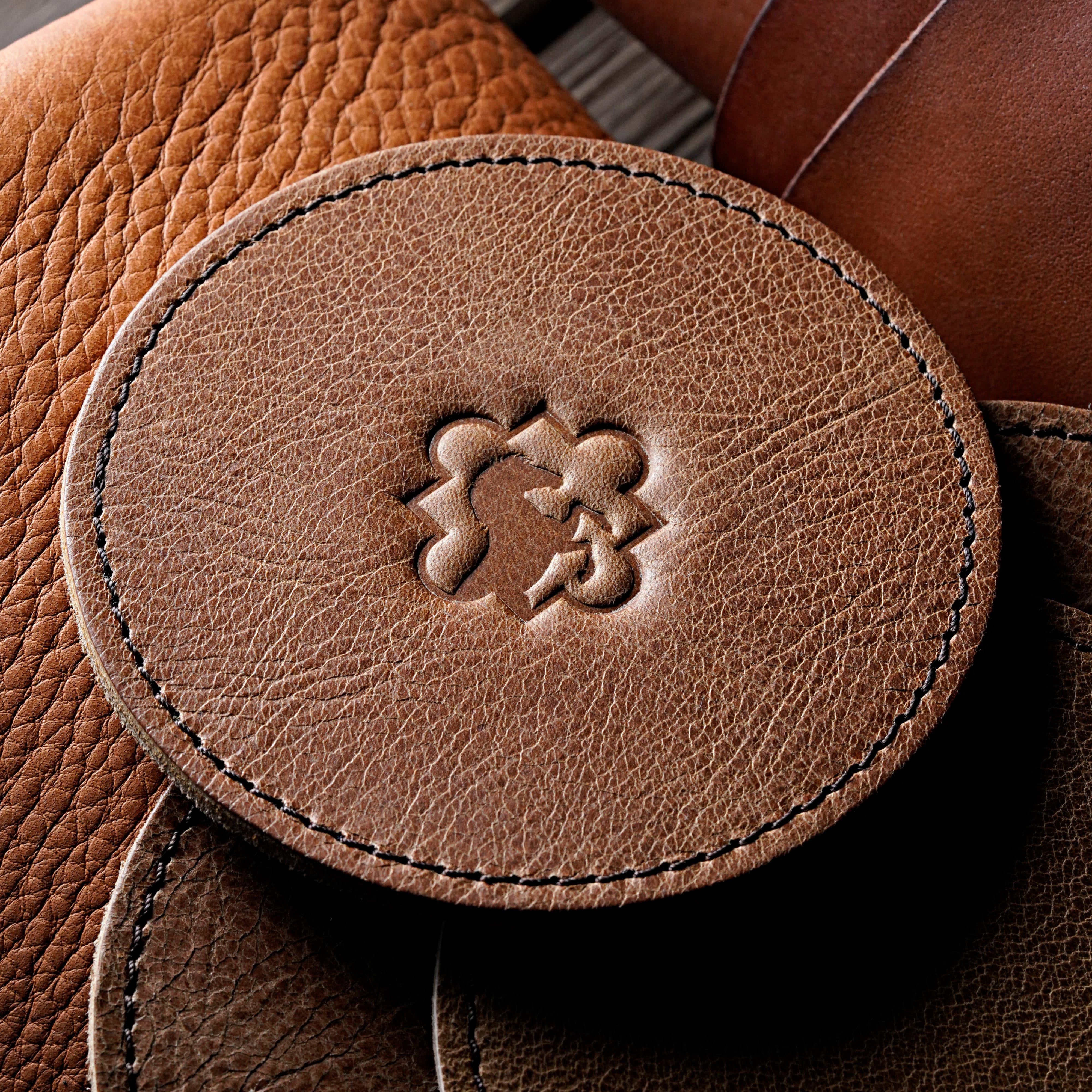 Echtleder ist durch Heißprägung personalisierbar. Dabe pressen wir bei hoher Temperatur ein Prägewerkzeug in das Leder, wordurch sich die Farbe ändert und die Prägung permanent fixiert wird. Heißgeprägtes Leder ist auch an den personalisierten Stellen leicht zu reinigen, da die Oberfläche durch die Prägung nicht beschädigt wird.